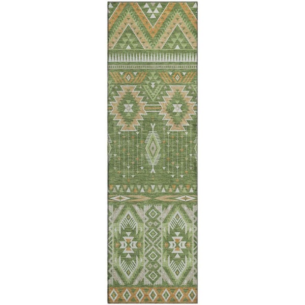 Mayfield Premium Machine Washable Abstract AMF1851 Green 2 ft. 3 in. x 7 ft. 6 in. Runner Rug