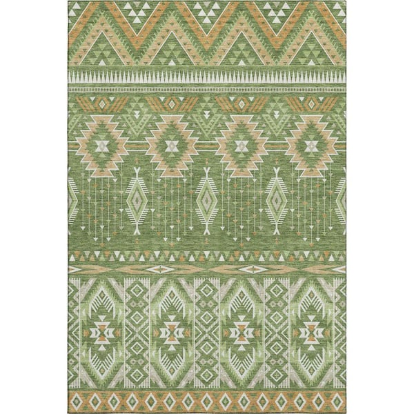 Mayfield Premium Machine Washable Abstract AMF1851 Green 3 ft. x 4 ft. Area Rug