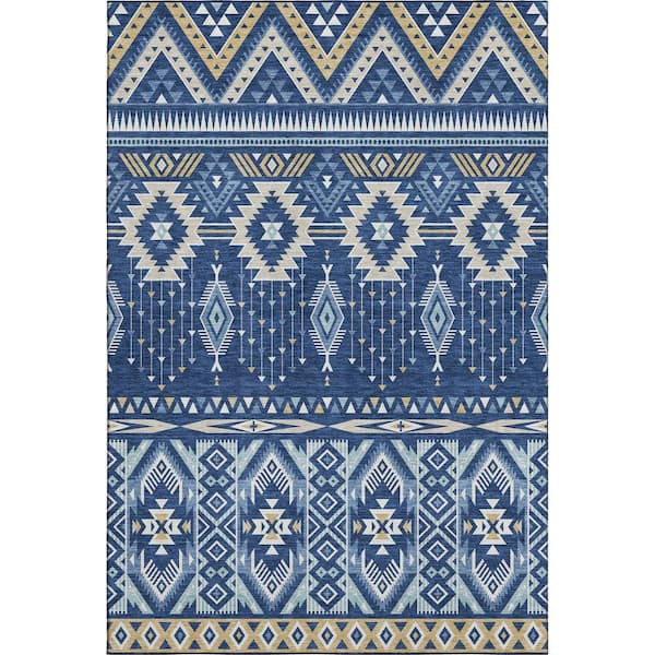 Mayfield Premium Machine Washable Abstract AMF1851 Navy 9 ft. x 12 ft. Area Rug