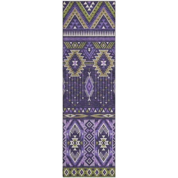 Mayfield Premium Machine Washable Abstract AMF1851 Purple 2 ft. 3 in. x 7 ft. 6 in. Runner Rug