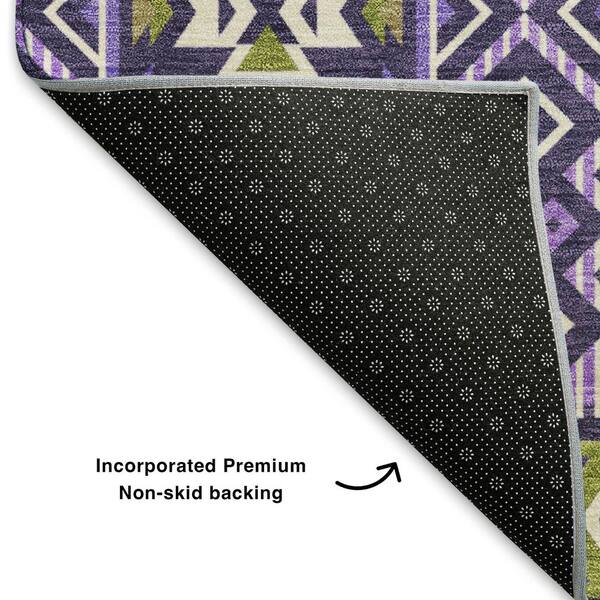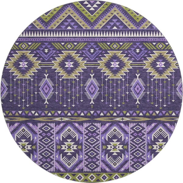 Mayfield Premium Machine Washable Abstract AMF1851 Purple 8 ft. x 8 ft. Round Rug