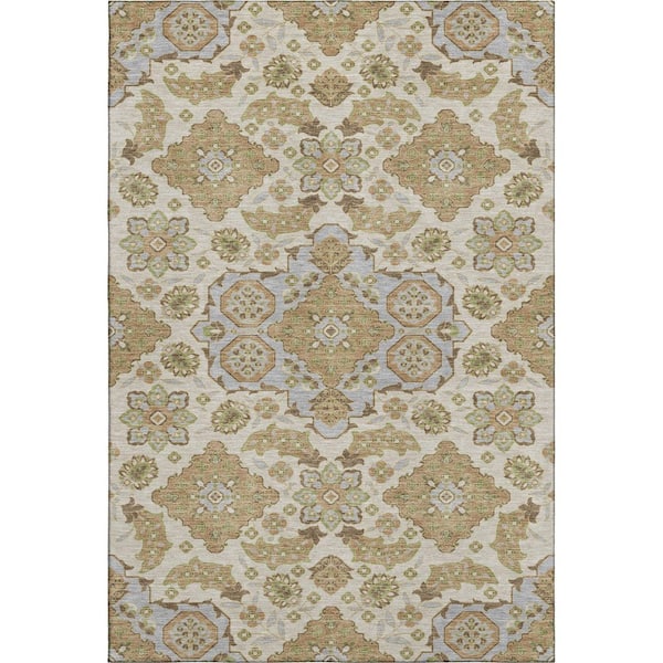 Mayfield Premium Machine Washable Abstract AMF1853 Beige 3 ft. x 5 ft. Area Rug