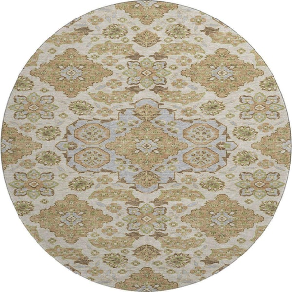 Mayfield Premium Machine Washable Abstract AMF1853 Beige 8 ft. x 8 ft. Round Rug