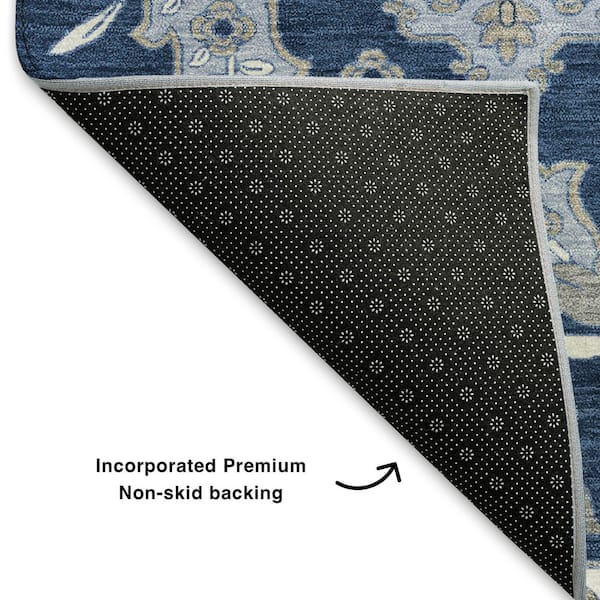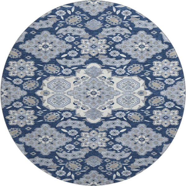 Mayfield Premium Machine Washable Abstract AMF1853 Blue 8 ft. x 8 ft. Round Rug