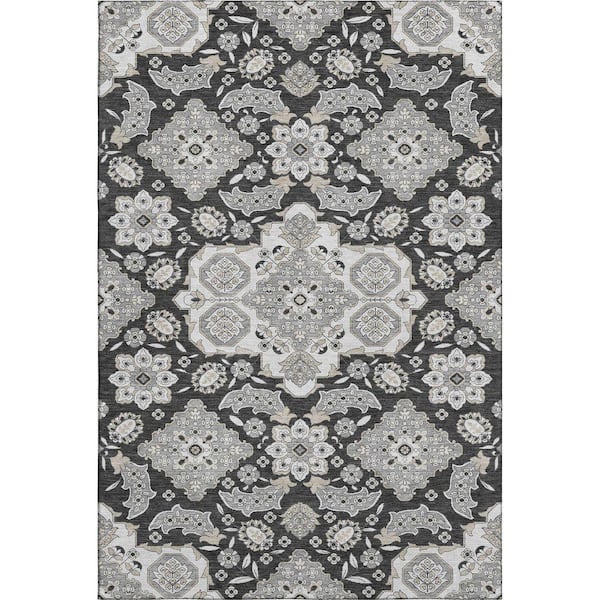 Mayfield Premium Machine Washable Abstract AMF1853 Charcoal 8 ft. x 10 ft. Area Rug