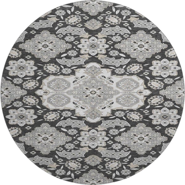 Mayfield Premium Machine Washable Abstract AMF1853 Charcoal 8 ft. x 8 ft. Round Rug