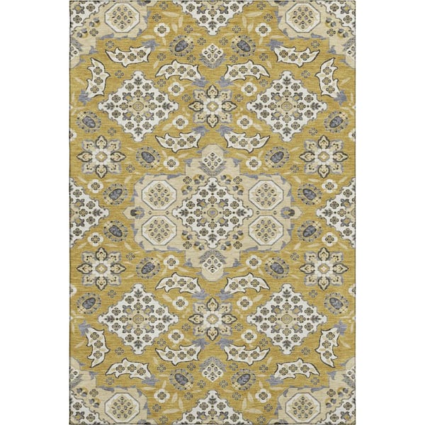 Mayfield Premium Machine Washable Abstract AMF1853 Gold 3 ft. x 5 ft. Area Rug