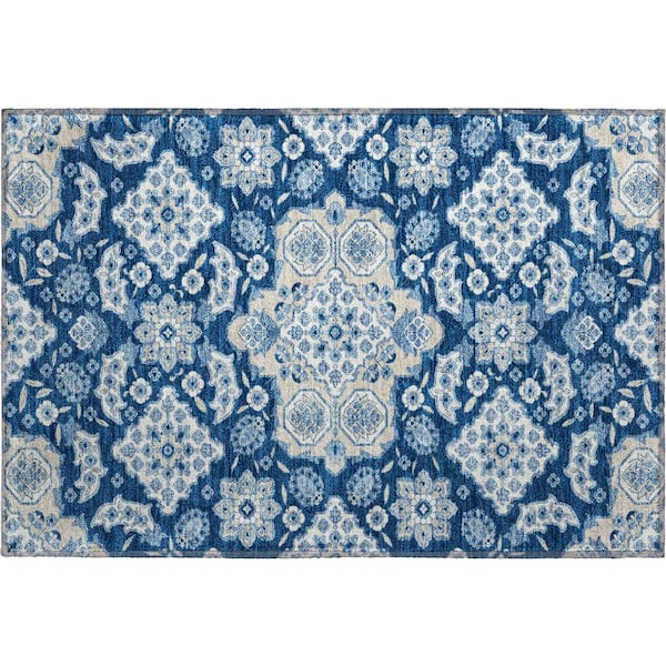 Mayfield Premium Machine Washable Abstract AMF1853 Navy 2 ft. x 3 ft. Area Rug
