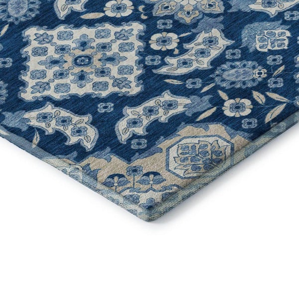 Mayfield Premium Machine Washable Abstract AMF1853 Navy 3 ft. x 5 ft. Area Rug