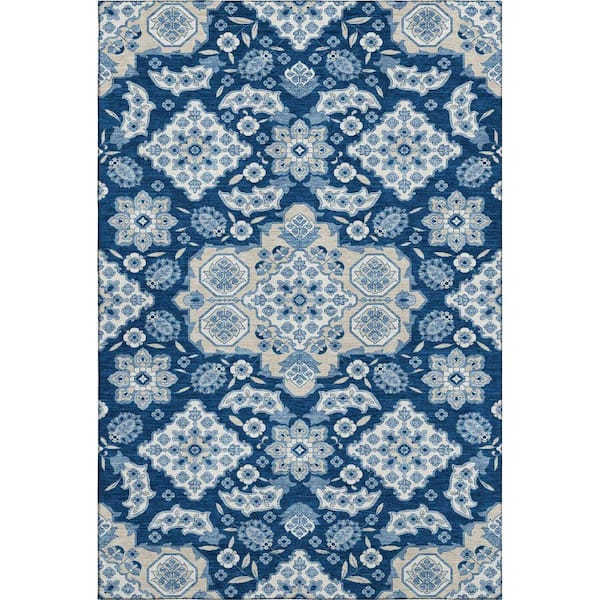 Mayfield Premium Machine Washable Abstract AMF1853 Navy 9 ft. x 12 ft. Area Rug