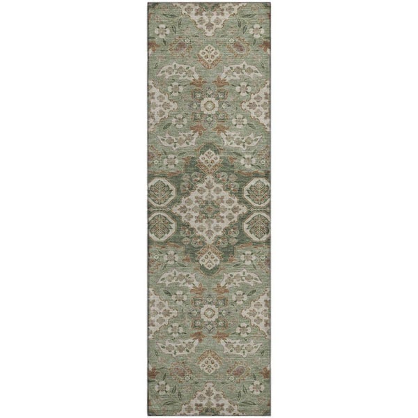 Mayfield Premium Machine Washable Abstract AMF1853 Sage 2 ft. 3 in. x 7 ft. 6 in. Runner Rug