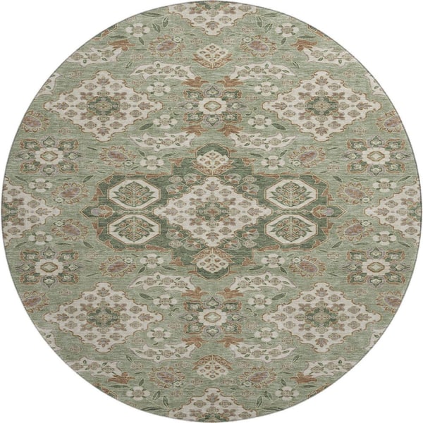 Mayfield Premium Machine Washable Abstract AMF1853 Sage 8 ft. x 8 ft. Round Rug