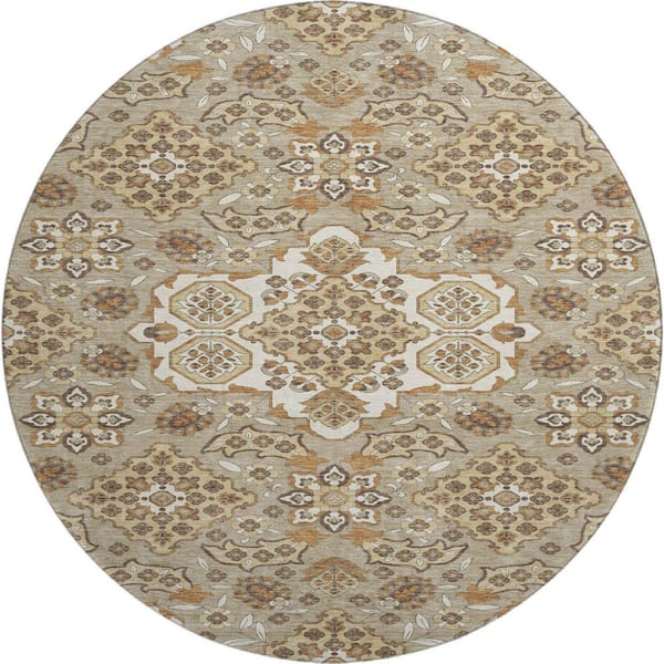 Mayfield Premium Machine Washable Abstract AMF1853 Taupe 8 ft. x 8 ft. Round Rug