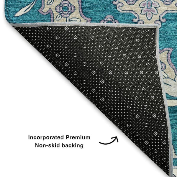 Mayfield Premium Machine Washable Abstract AMF1853 Teal 8 ft. x 8 ft. Round Rug