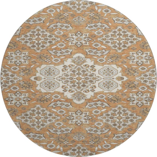 Mayfield Premium Machine Washable Abstract AMF1853 Terracotta 8 ft. x 8 ft. Round Rug