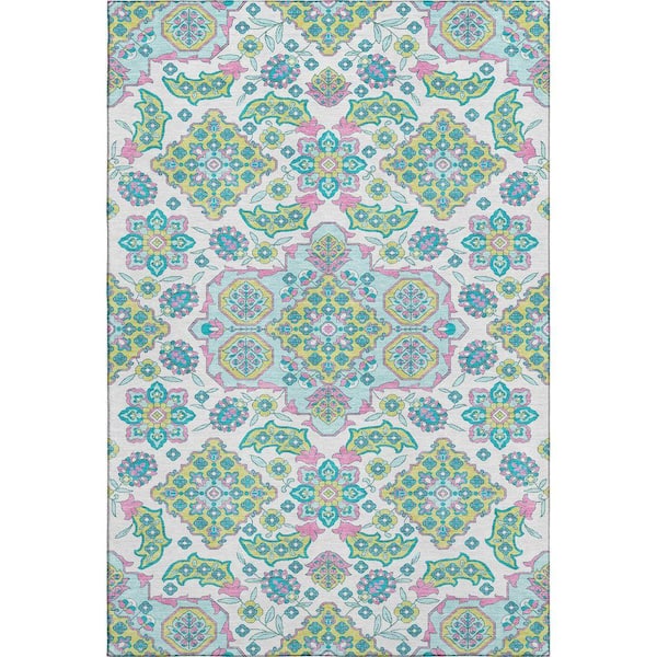 Mayfield Premium Machine Washable Abstract AMF1853 White 10 ft. x 14 ft. Area Rug