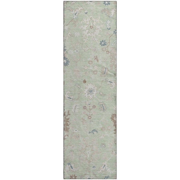 Mayfield Premium Machine Washable Abstract AMF1854 Aloe 2 ft. 3 in. x 7 ft. 6 in. Runner Rug