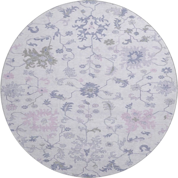 Mayfield Premium Machine Washable Abstract AMF1854 Lavender 8 ft. x 8 ft. Round Rug