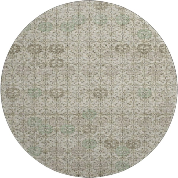 Mayfield Premium Machine Washable Abstract AMF1855 Beige 8 ft. x 8 ft. Round Rug