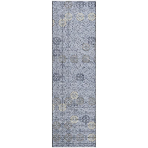 Mayfield Premium Machine Washable Abstract AMF1855 Blue 2 ft. 3 in. x 7 ft. 6 in. Runner Rug