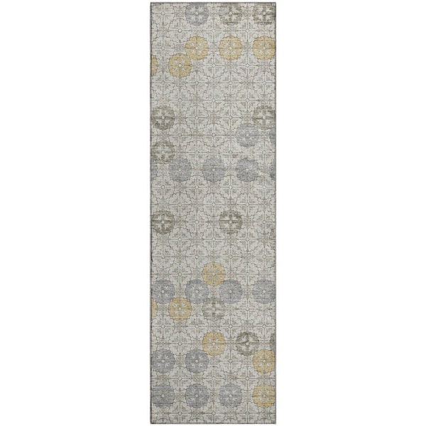 Mayfield Premium Machine Washable Abstract AMF1855 Ivory 2 ft. 3 in. x 7 ft. 6 in. Runner Rug