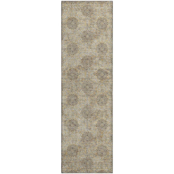 Mayfield Premium Machine Washable Abstract AMF1856 Gold 2 ft. 3 in. x 7 ft. 6 in. Runner Rug