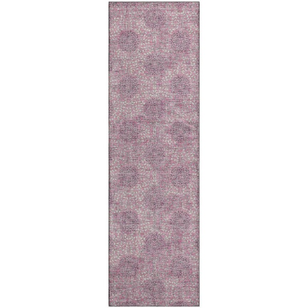 Mayfield Premium Machine Washable Abstract AMF1856 Pink 2 ft. 3 in. x 7 ft. 6 in. Runner Rug