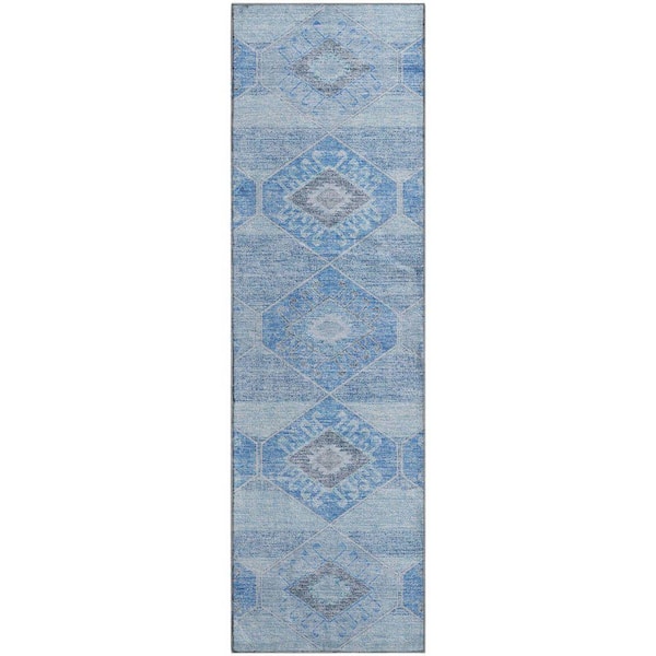 Mayfield Premium Machine Washable Abstract AMF1857 Blue 2 ft. 3 in. x 7 ft. 6 in. Runner Rug