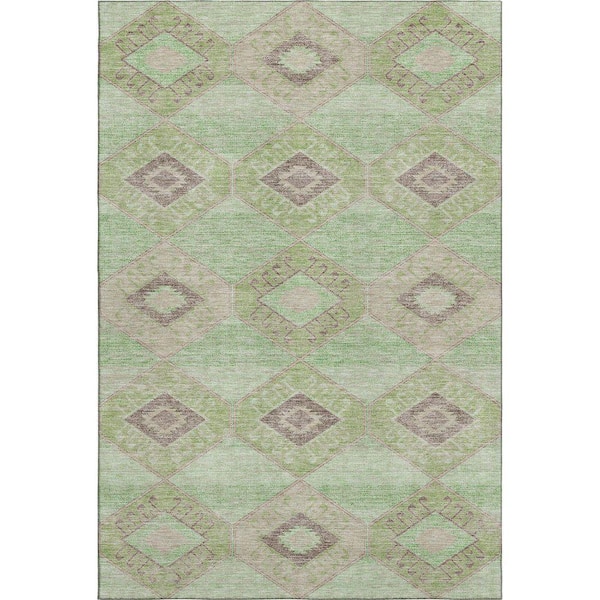 Mayfield Premium Machine Washable Abstract AMF1857 Green 3 ft. x 4 ft. Area Rug