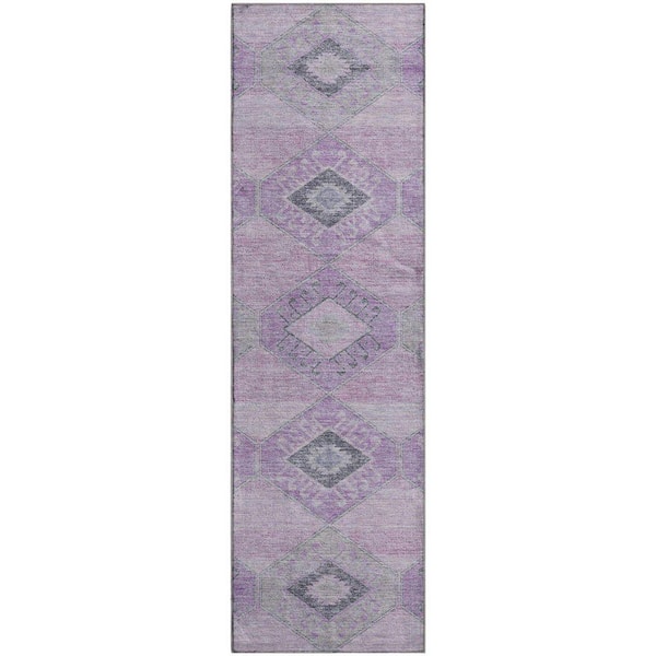 Mayfield Premium Machine Washable Abstract AMF1857 Lavender 2 ft. 3 in. x 7 ft. 6 in. Runner Rug