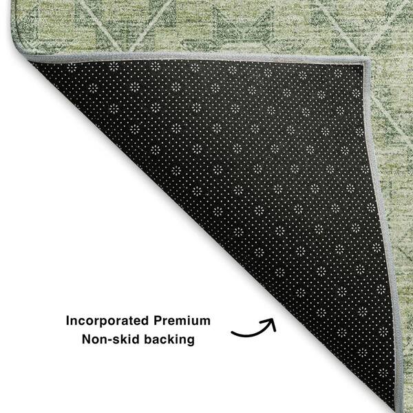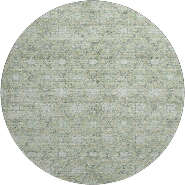Mayfield Premium Machine Washable Abstract AMF1858 Aloe 8 ft. x 8 ft. Round Rug
