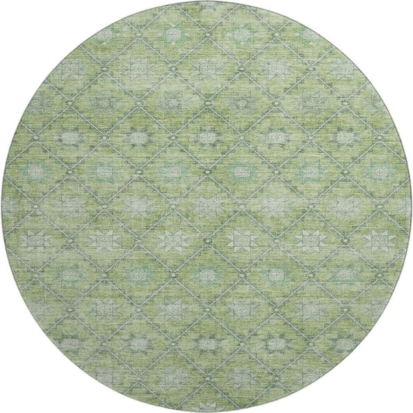 Mayfield Premium Machine Washable Abstract AMF1858 Green 8 ft. x 8 ft. Round Rug