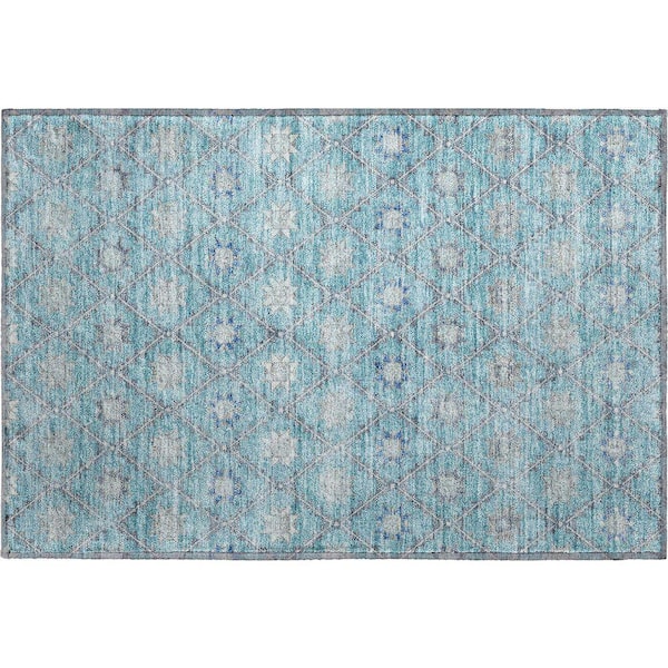 Mayfield Premium Machine Washable Abstract AMF1858 Teal 2 ft. x 3 ft. Area Rug