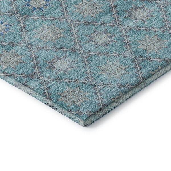Mayfield Premium Machine Washable Abstract AMF1858 Teal 8 ft. x 10 ft. Area Rug