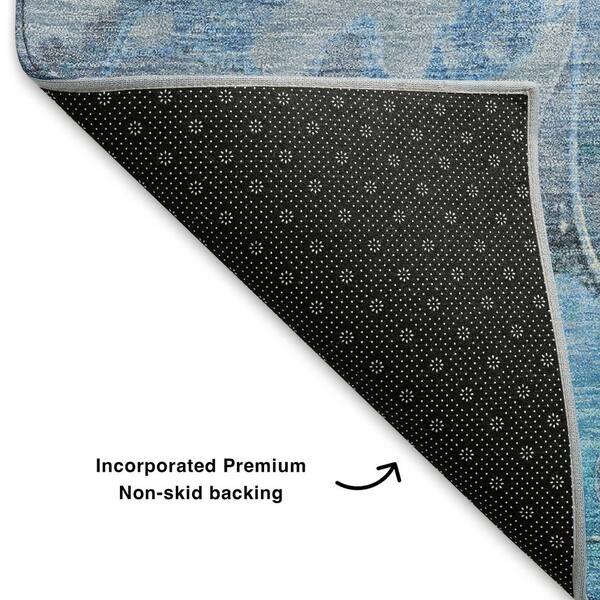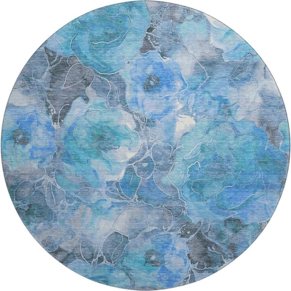 Mayfield Premium Machine Washable Abstract AMF1859 Blue 8 ft. x 8 ft. Round Rug