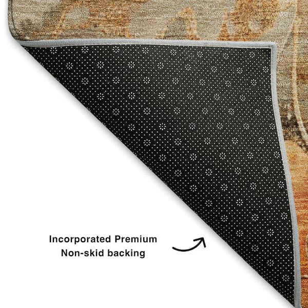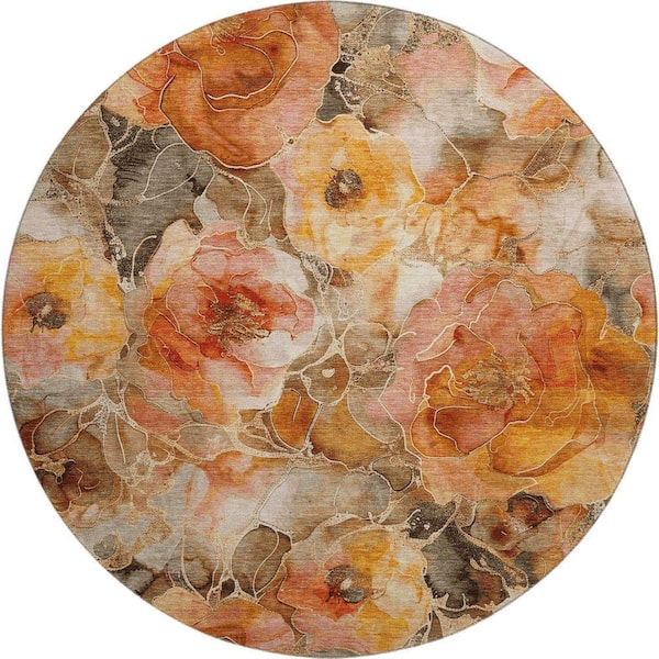 Mayfield Premium Machine Washable Abstract AMF1859 Orange 8 ft. x 8 ft. Round Rug