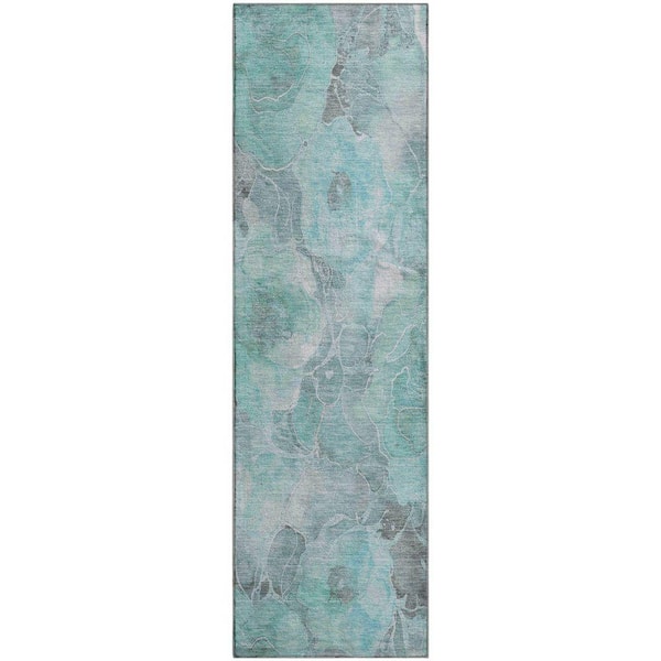 Mayfield Premium Machine Washable Abstract AMF1859 Teal 2 ft. 3 in. x 7 ft. 6 in. Runner Rug