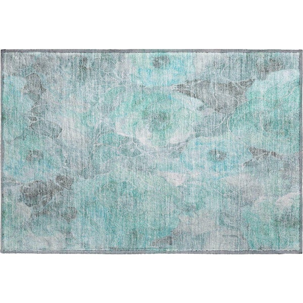 Mayfield Premium Machine Washable Abstract AMF1859 Teal 2 ft. x 3 ft. Area Rug