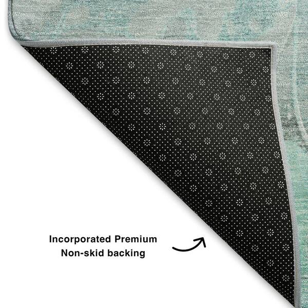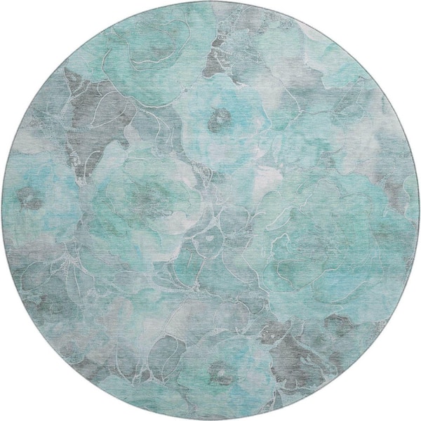 Mayfield Premium Machine Washable Abstract AMF1859 Teal 8 ft. x 8 ft. Round Rug