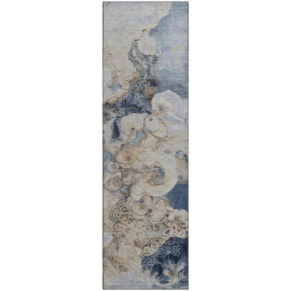 Mayfield Premium Machine Washable Abstract AMF1860 Denim 2 ft. 3 in. x 7 ft. 6 in. Runner Rug