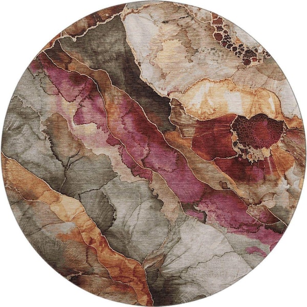 Mayfield Premium Machine Washable Abstract AMF1864 Khaki 8 ft. x 8 ft. Round Rug