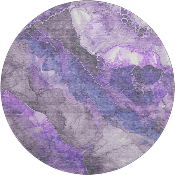 Mayfield Premium Machine Washable Abstract AMF1864 Lavender 8 ft. x 8 ft. Round Rug