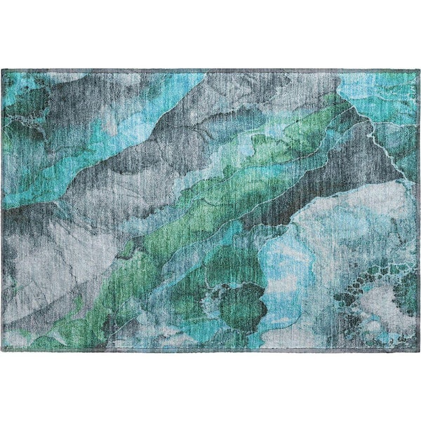 Mayfield Premium Machine Washable Abstract AMF1864 Teal 2 ft. x 3 ft. Area Rug