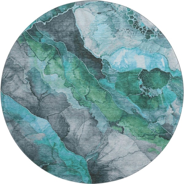 Mayfield Premium Machine Washable Abstract AMF1864 Teal 8 ft. x 8 ft. Round Rug