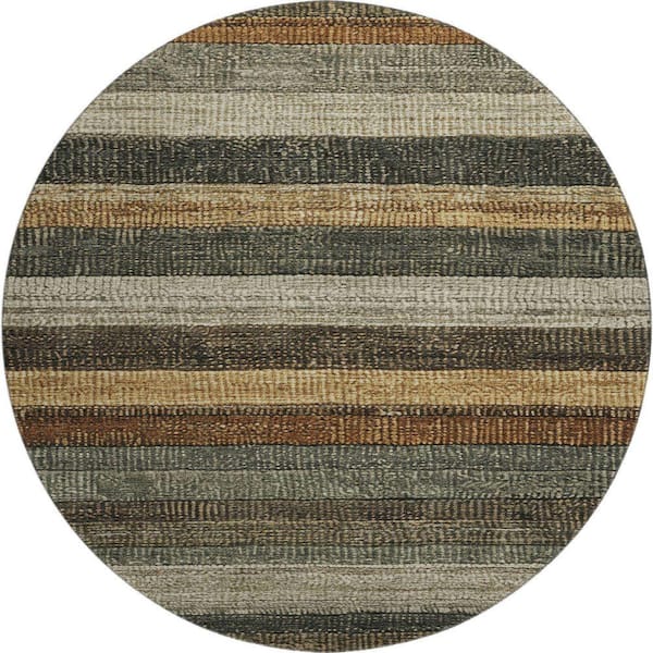 Mayfield Premium Machine Washable Abstract AMF1865 Khaki 8 ft. x 8 ft. Round Rug