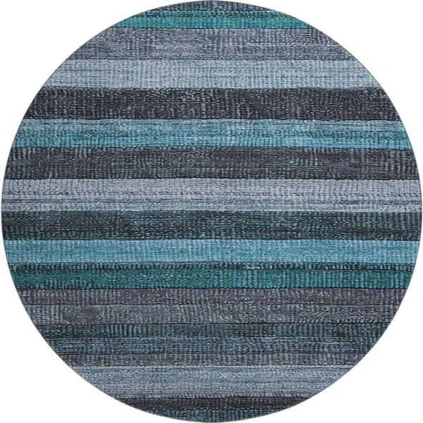 Mayfield Premium Machine Washable Abstract AMF1865 Teal 8 ft. x 8 ft. Round Rug