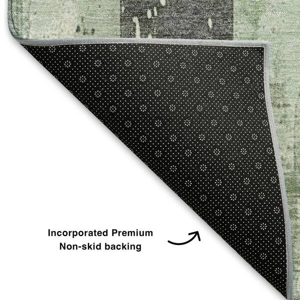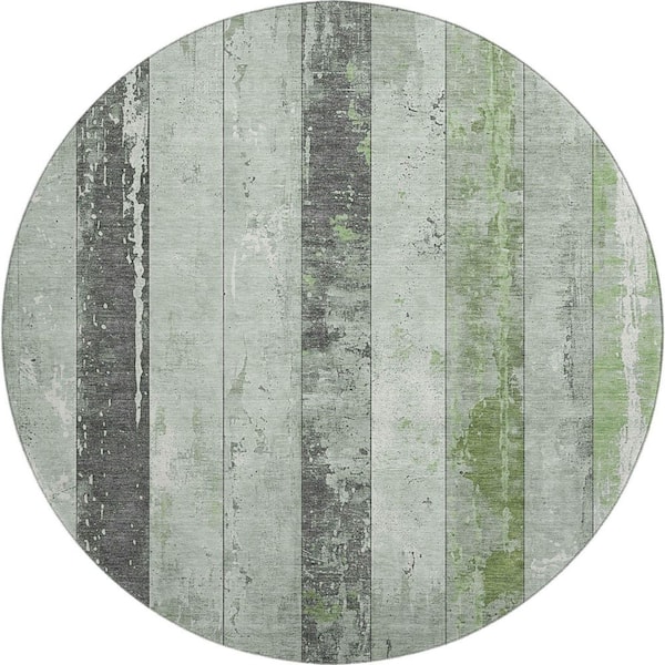 Mayfield Premium Machine Washable Abstract AMF1868 Aloe 8 ft. x 8 ft. Round Rug