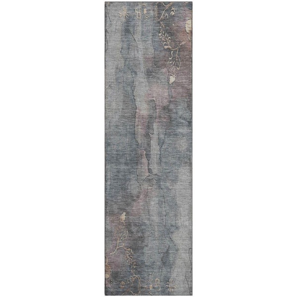 Mayfield Premium Machine Washable Abstract AMF1869 Gray 2 ft. 3 in. x 7 ft. 6 in. Runner Rug