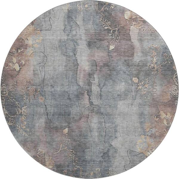 Mayfield Premium Machine Washable Abstract AMF1869 Gray 8 ft. x 8 ft. Round Rug