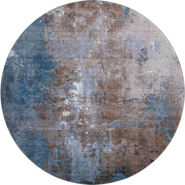 Mayfield Premium Machine Washable Abstract AMF1870 Brown 8 ft. x 8 ft. Round Rug